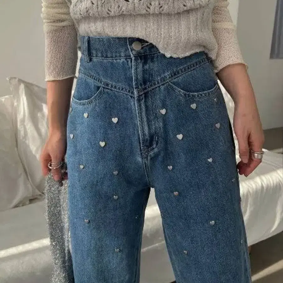 willfully 하트 리벳 & 자수 데님 팬츠 위르프리 M