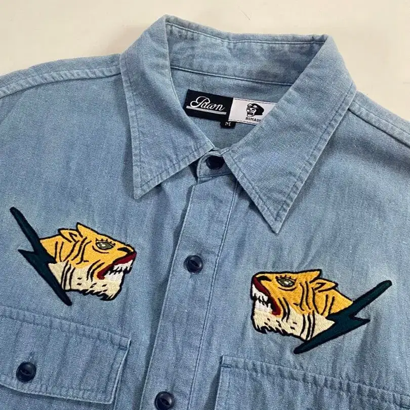 Pawn nomads 스카잔 호랑이 자수 데님 셔츠 M 스카