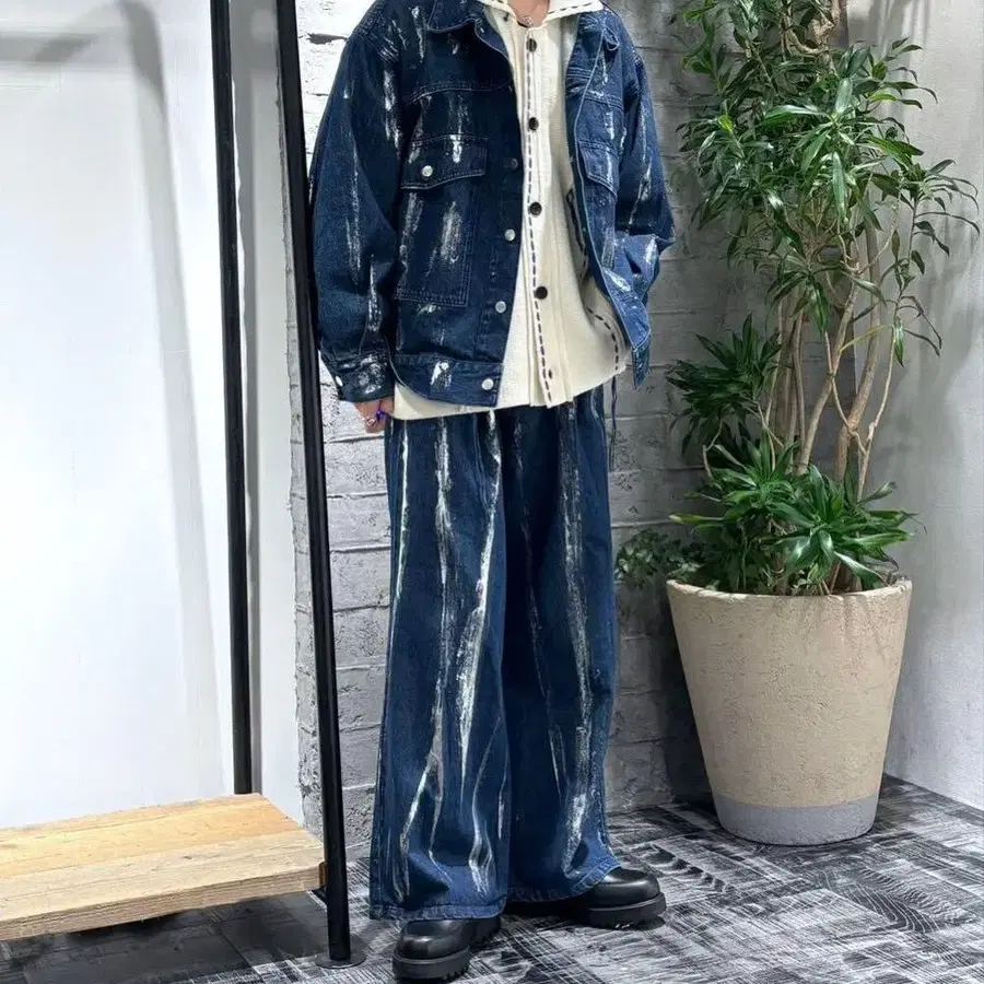 호일 프린트 와이드 데님 팬츠 ( HARE )