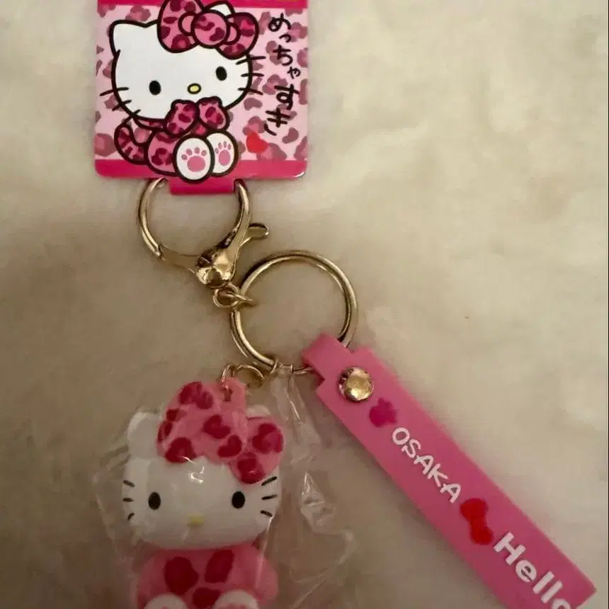 산리오 키티 핑크 레오파드 무늬 입체 러버 키링 오사카 한정판