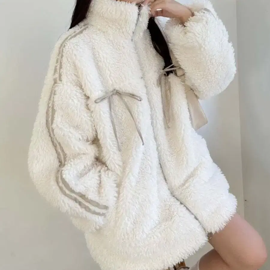 NICE CLAUP 리본 보아 블루종 아이보리 리본 탈부착 가능