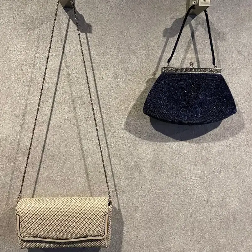 화이트 메쉬 숄더백과 네이비 클러치백 세트