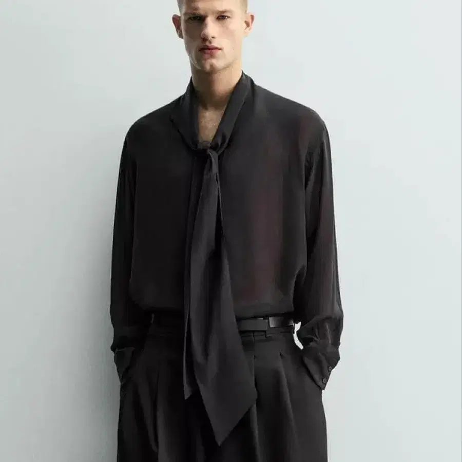 남성용 L 리본 타이 남성 블라우스 블랙 zara