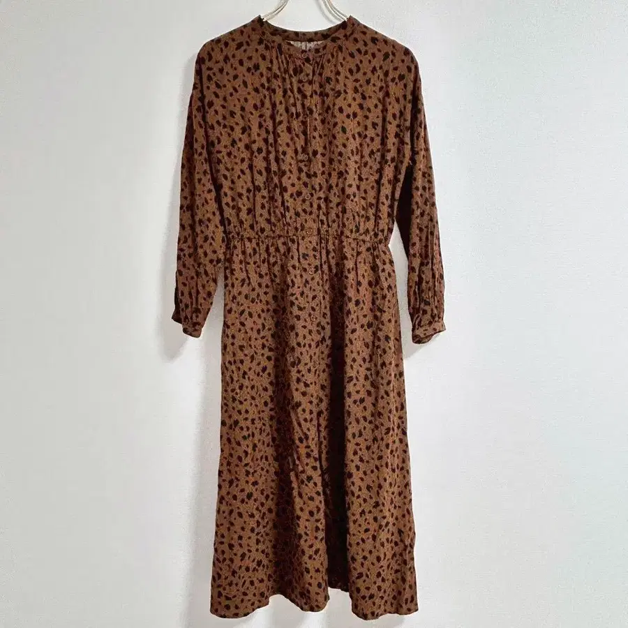 브라운 레오파드 무늬의 긴팔 롱 원피스, M 사이즈.