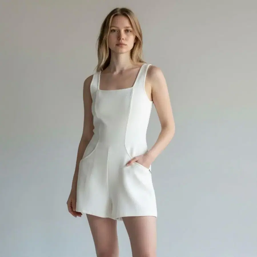 FOXEY 화이트 메쉬 슬리브리스 숏 올인원