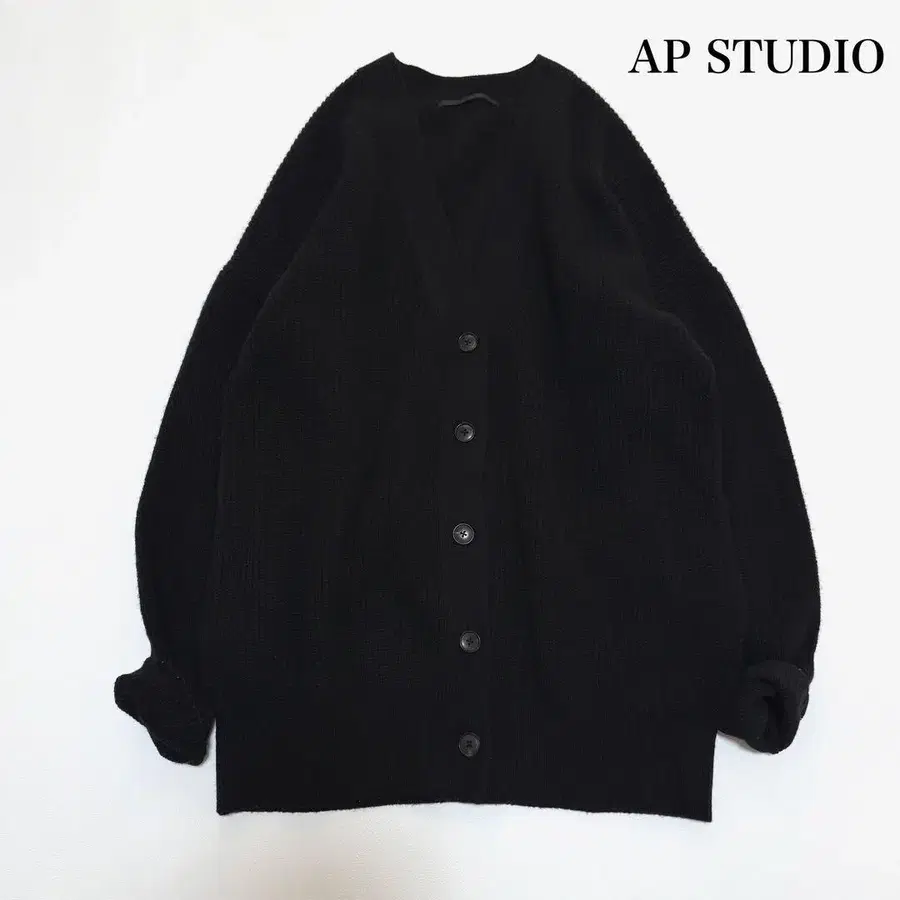 AP STUDIO 울 캐시미어 니트 가디건 블랙 V넥 루즈핏