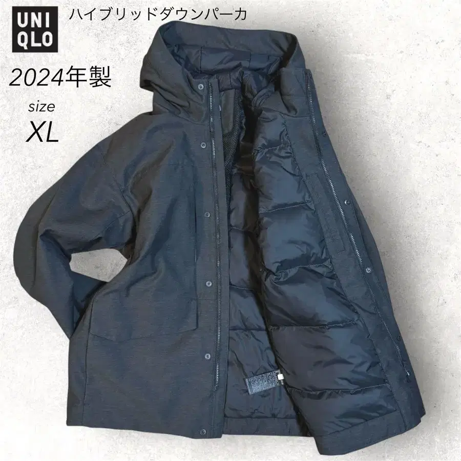 UNIQLO 하이브리드 다운 후드티 남성용 XL 그레이 477217