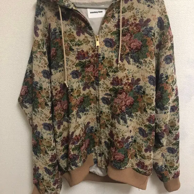 자동 번역되었어요. 원문보기꽃무늬 디자인의 후드 부착 고블랑 집업 자켓.