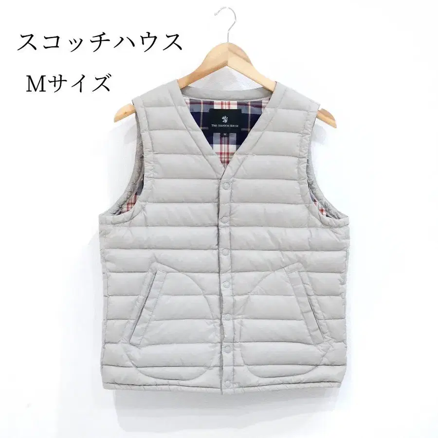 스카치 하우스 다운 베스트 M 사이즈 체크 그레이지