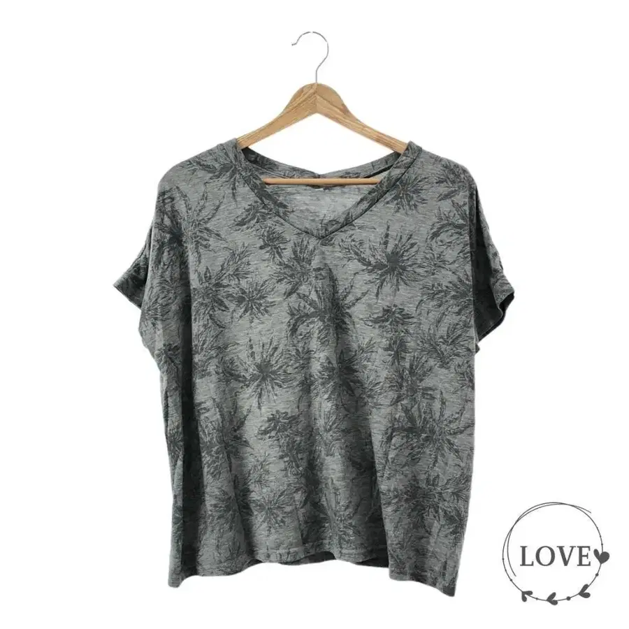 ★ 최종 가격 ★ 티셔츠 상의 캐주얼 V넥 반팔 올 패턴 백 턱 빅 사이즈 여성용 그레이 L 상의