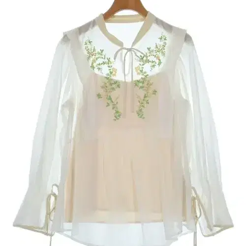 아틀리에 에누즈 리본 포함 베이지 벌룬 슬리브 블라우스