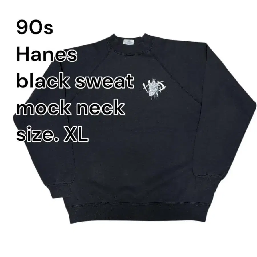 90년대 Hanes제 블랙 모크넥 맨투맨, XL 사이즈.