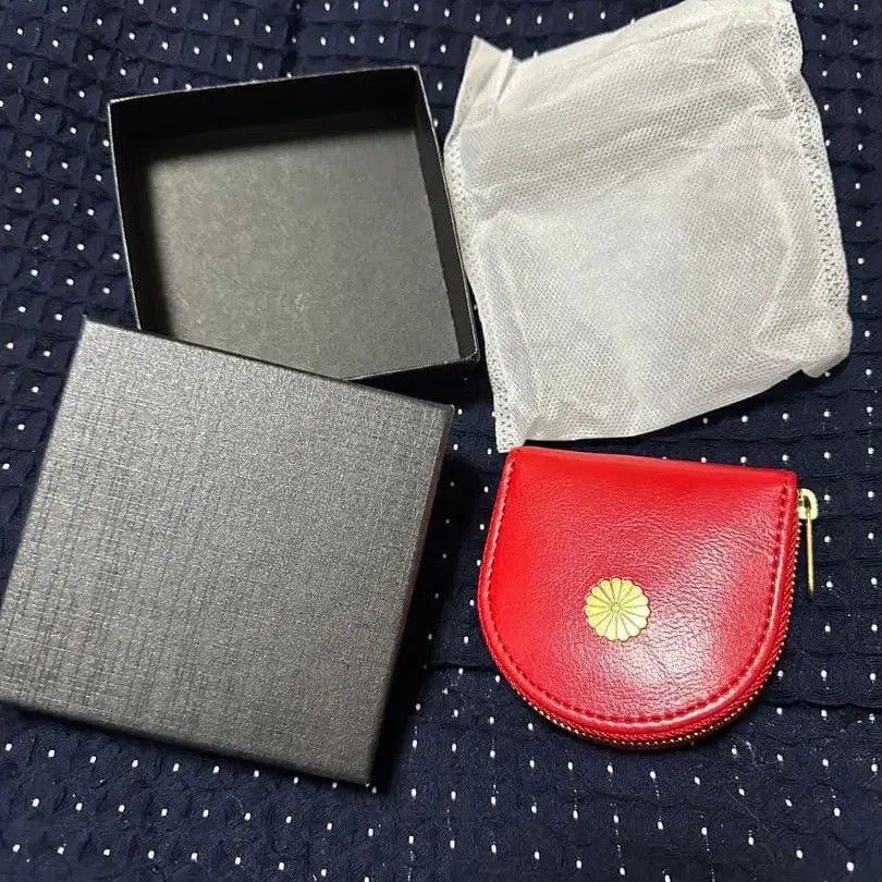 미사용 새상품 황궁 지갑 말발굽형 코인 케이스 동전 지갑 소가죽 빨간색