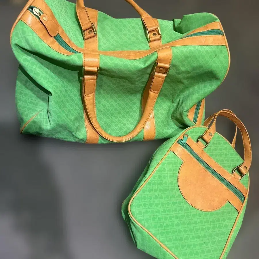 레어! 게라르디니 로고 보스턴 백 나일론 그린 신발 가방