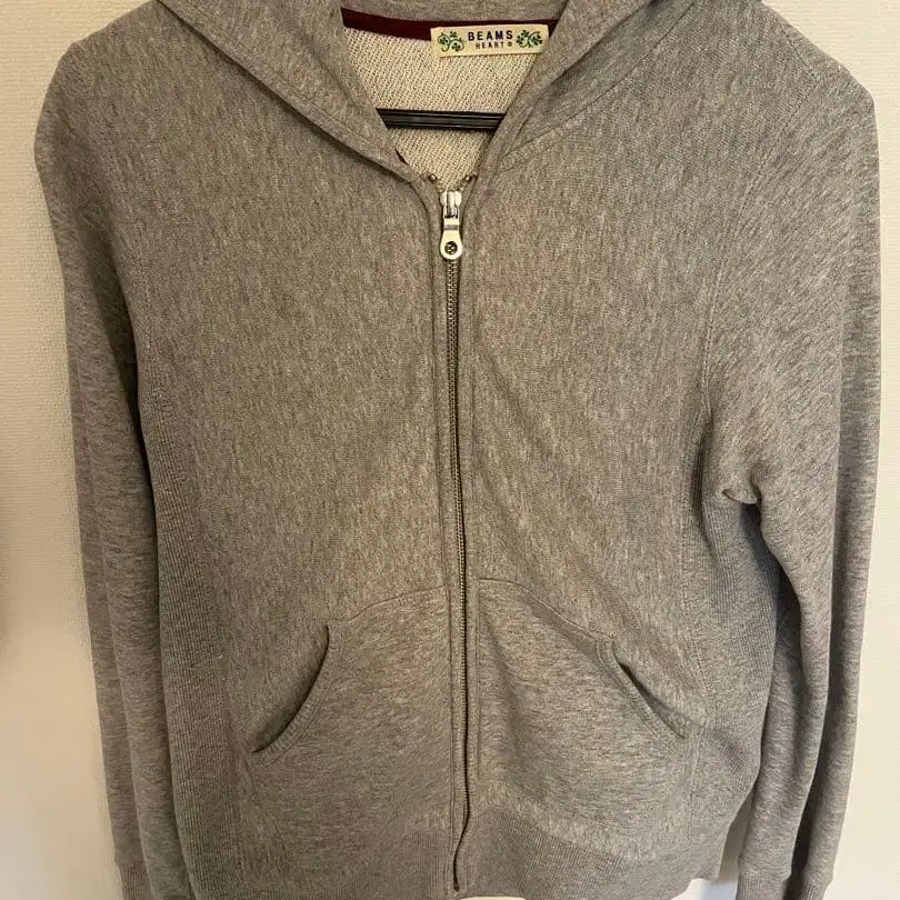 BEAMS 그레이 후드 부착 후드티