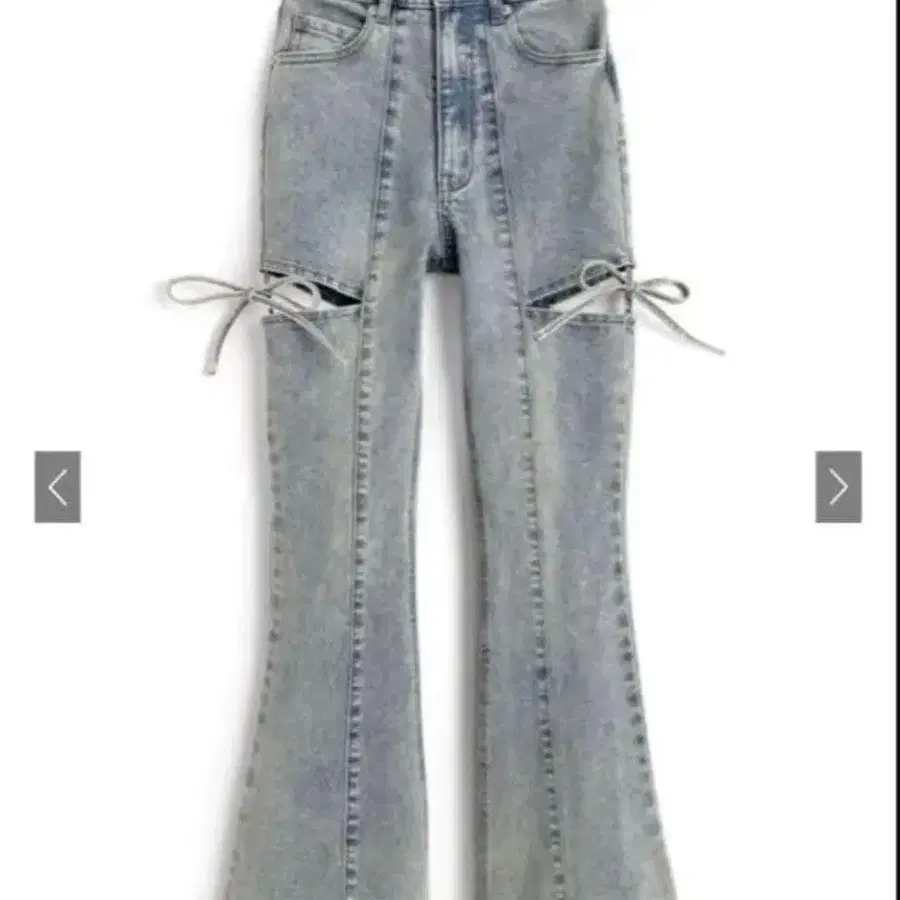 사이드 컷 아웃 리본 플레어 데님 팬츠 GRL [cu578]