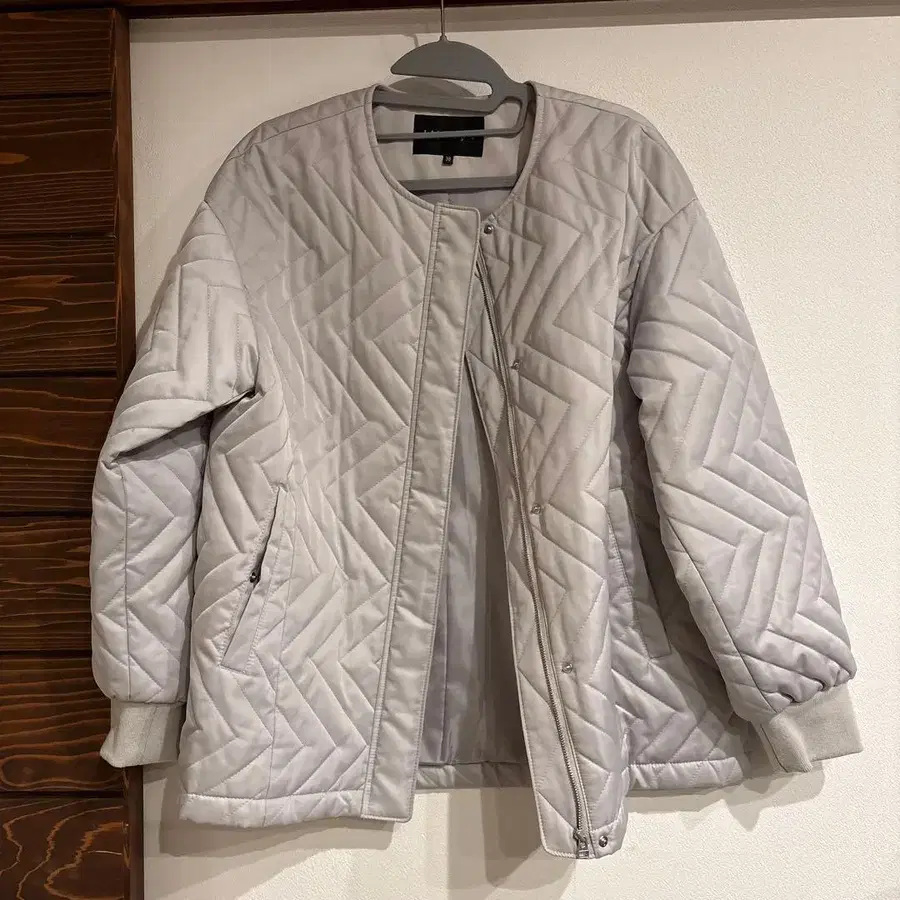 INDIVI 노카라 퀼팅 자켓 라이트 그레이