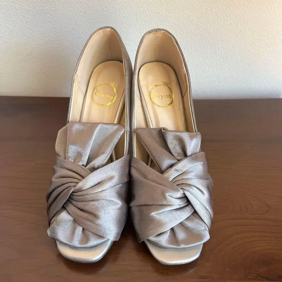 실버 새틴 꼬임 디자인 펌프스 22.5cm b-tytto