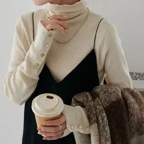 맨투맨, 니트, 자켓의 소매에서 터틀 부분을 살짝 보이게 하여 포인트로 활용하기에도 ◎