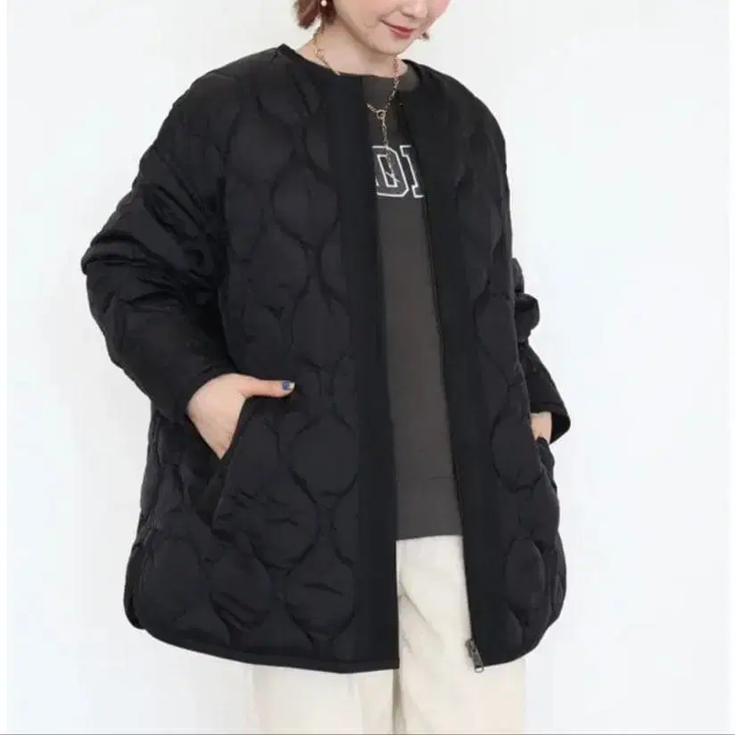 아메리칸 홀릭 블랙 따뜻한 퀼팅 코트