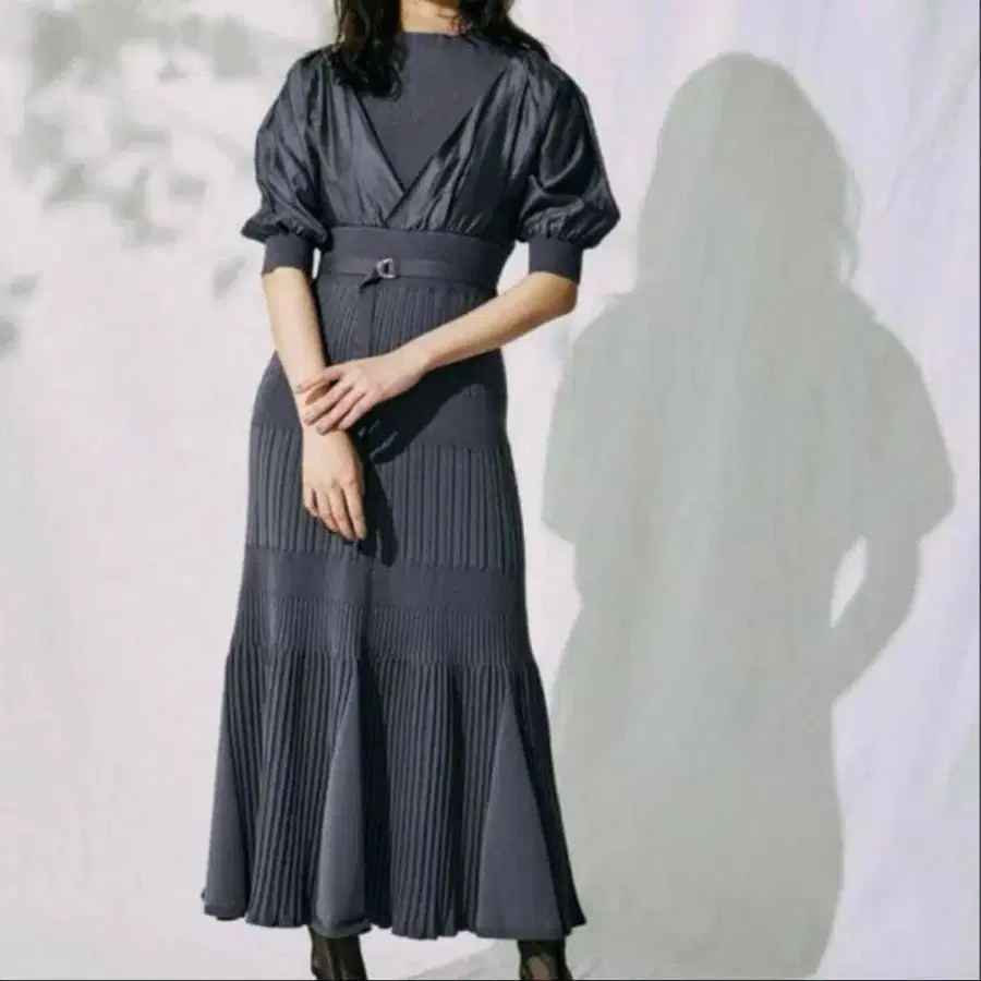 머큐리 듀오 이소재 도킹 플레어 니트 원피스 네이비 컨디션 최상