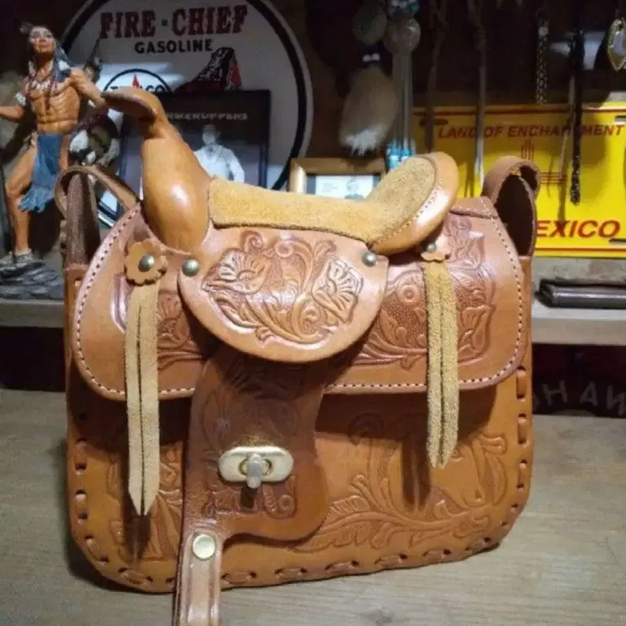 소 가죽 웨스턴 안장형 백 숄더백 멕시코제 크라프트