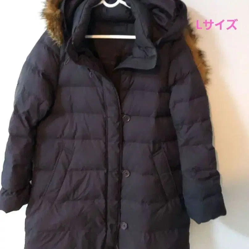 유니클로 롱 다운 코트 퍼 포함 L 사이즈 네이비 여성용
