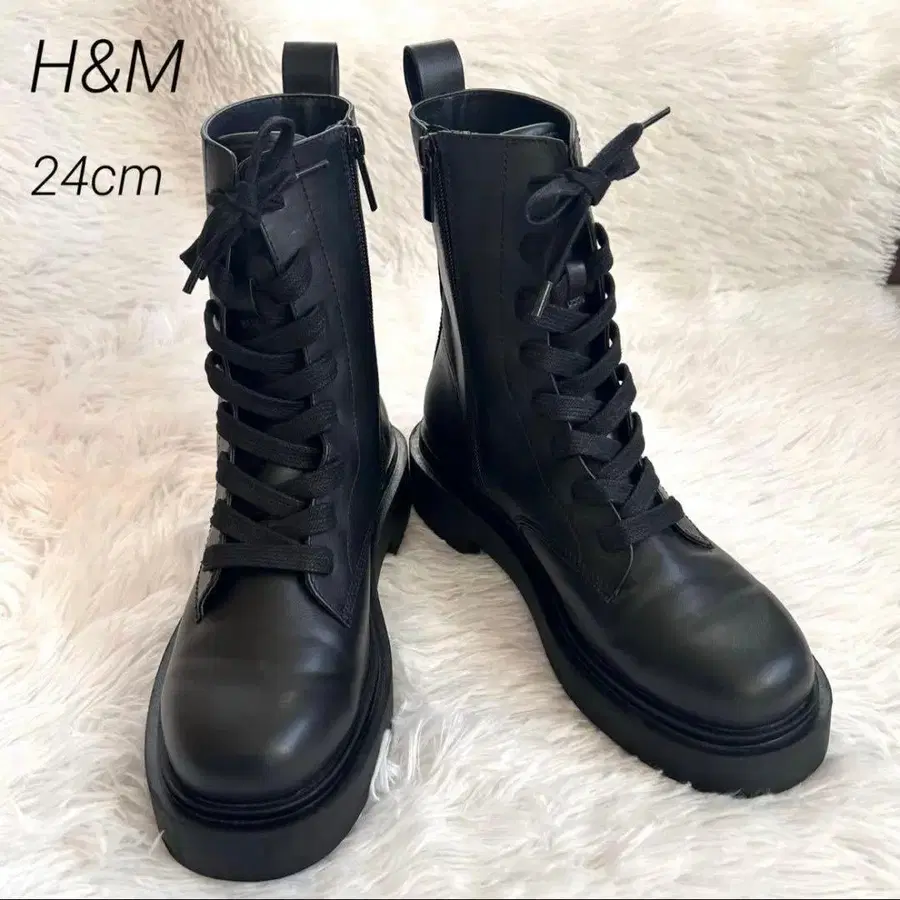 완판 H&M 레이스업 부츠 38 블랙 8홀 24cm