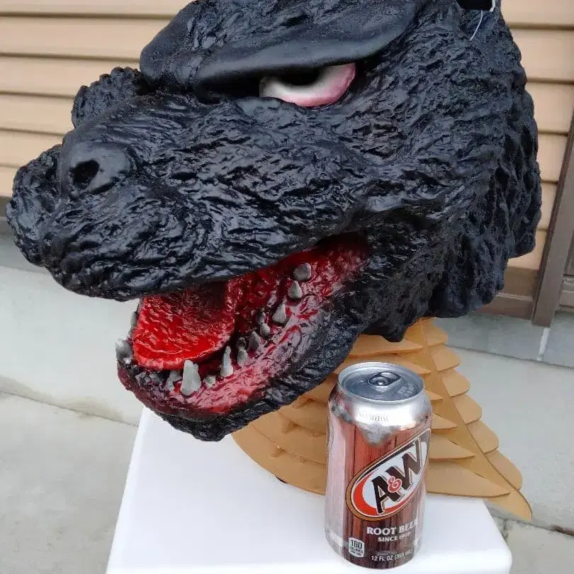 영화 [ 고질라 VS 비올란테 ] 비오 고질라의 리얼 사이즈 러버 마스크 미사용 새상품(택 포함)입니다. 촬영용 인형옷 사이즈로, 머리에 쓰는 성인용 풀 페이스형입니다. 실측치수: 폭 약 20cm, 깊이 약 36cm, 높이: 약 28cm이지만 크기는 사진의 350mmL 캔으로 비교해 주세요. 눈에 띄는 흠집, 끈적임, 페인팅 벗겨짐은 없습니다. 집에서 보관하고 있었지만, 미사용품입니다. 사진 촬영 및 상태 확인을 위해 개봉했지만, 한 번도 시착하지 않았습니다. 반려동물이나 흡연자도 없습니다. 마스크 본체는 부드러운 소재(ATBC-PVC)이므로, 작게 접은 상태로 발송합니다. 운송 중에 모양이 망가질 수도 있지만, 드라이어로 따뜻하게 하면 모양은 원래대로 복구됩니다. 사진의 받침대는 부속되지 않습니다. 사양은 마스크이지만, 모양을 조정하여 큰 피규어처럼 방에 장식하면 다른 것을 압도할 정도의 대단한 박력입니다. 도호 TOHO 공식 라이선스 상품