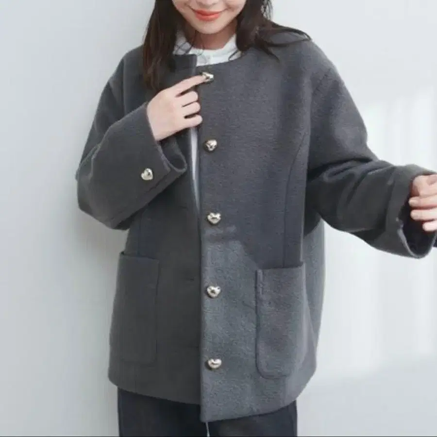 내추럴 꾸뛰르 하트 단추 포근한 소재 코트 자켓