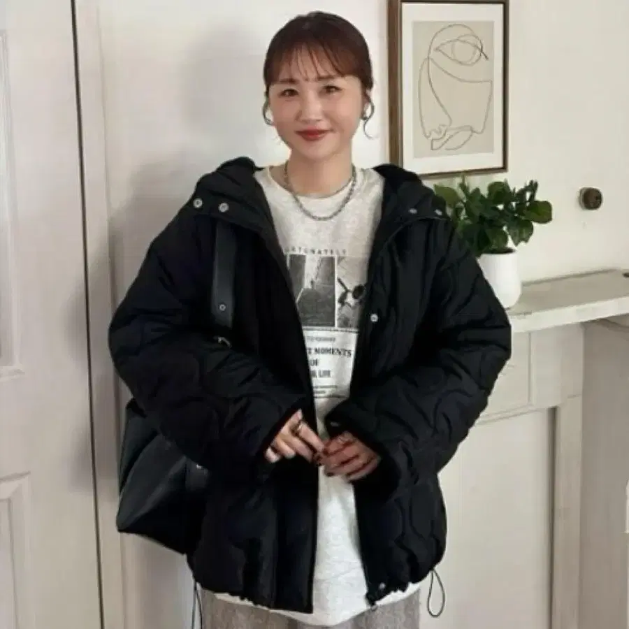 [새상품] 시마무라 omi 2way 후드 보아 퀼트 블루종 블랙