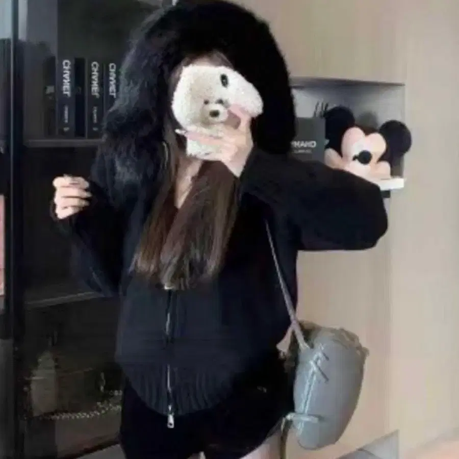 2WAY 퍼 후드 니트 후드티 블랙