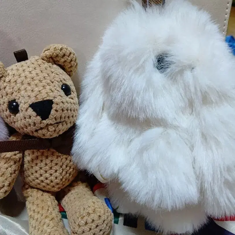 미사용 새상품 뜨개질 인형 곰과 퍼 키링 세트