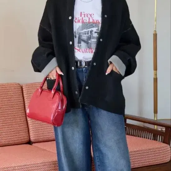 FREAKS STORE 안쪽 배색 스냅 니트 가디건 블랙