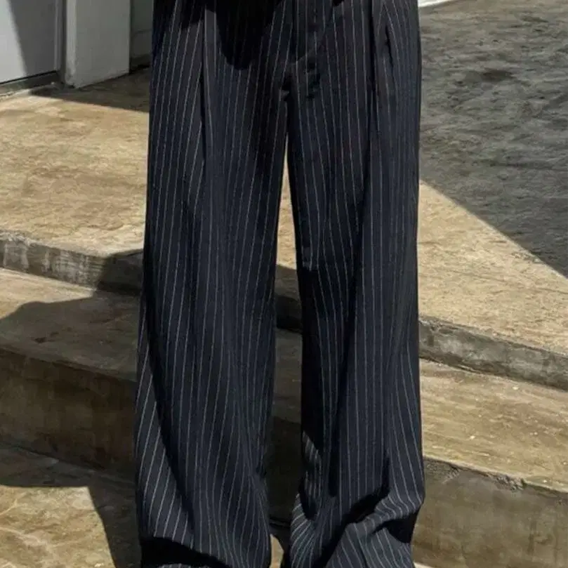 스트라이프 와이드 슬랙스 네이비