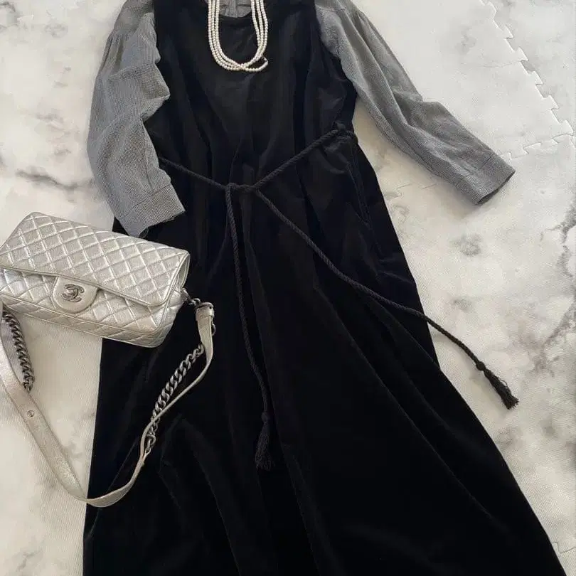 [유라이유라이] 스트레치 벨벳 롱 원피스 일본제 TANDEY