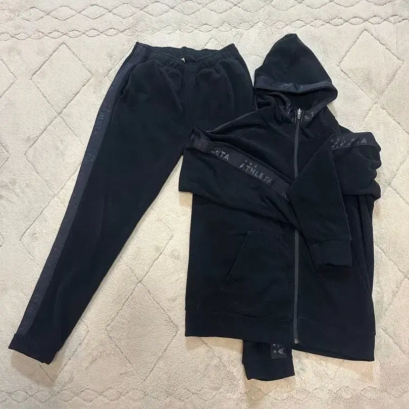 플리스 소재 맨투맨 상하의 세트 후드 부착 블랙