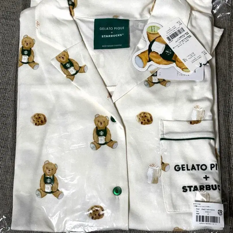 스타벅스 x 젤라또피케 베어 패턴 티셔츠 셔츠 아이보리