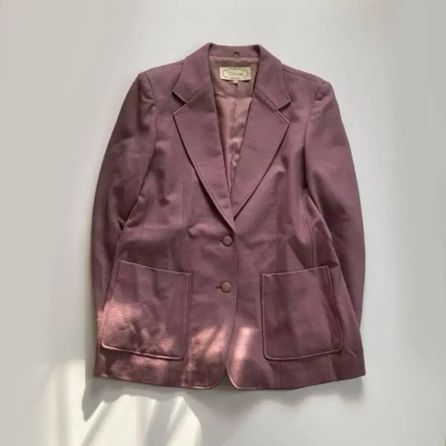 80s 레트로 테일러드 자켓 더스티 핑크 로고 버튼 L-XL 빅 사이즈