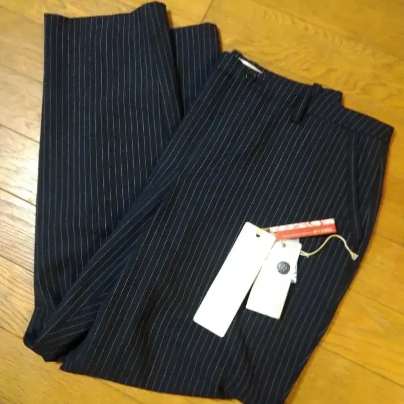 haunt 울 테이퍼드 팬츠 캐시미어 혼방 스트라이프 네이비 38