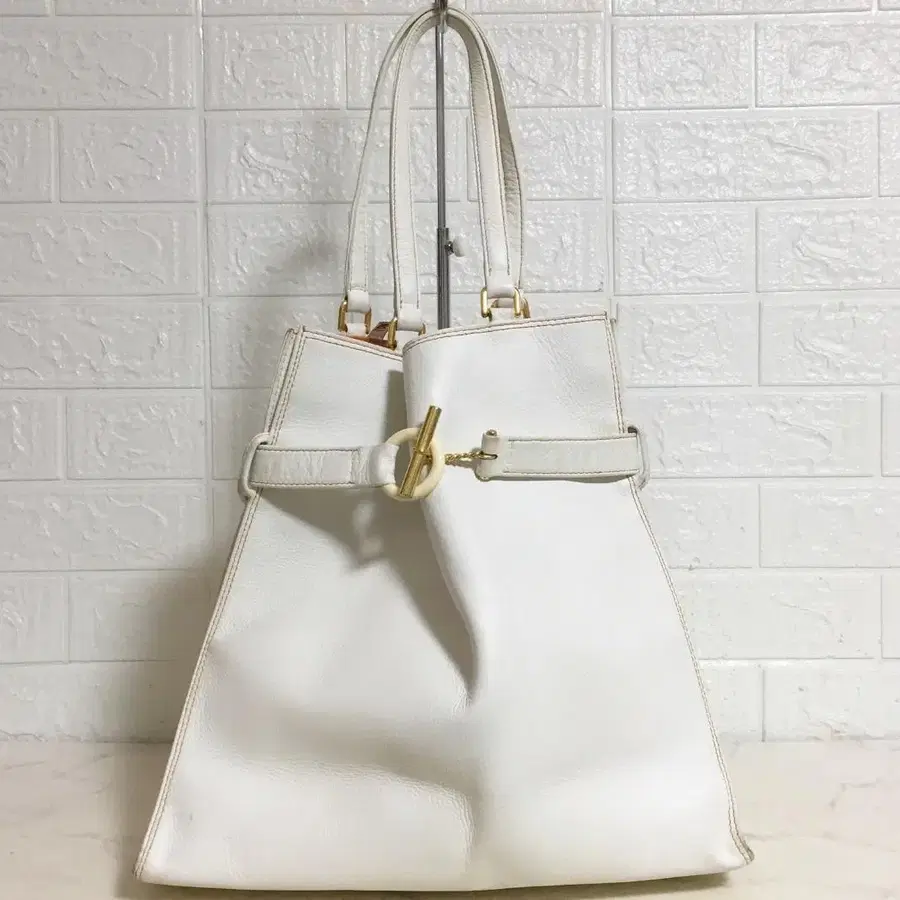 • 새상품급 키타무라 베이지 실버 로고 중간 골드 경량 토트백