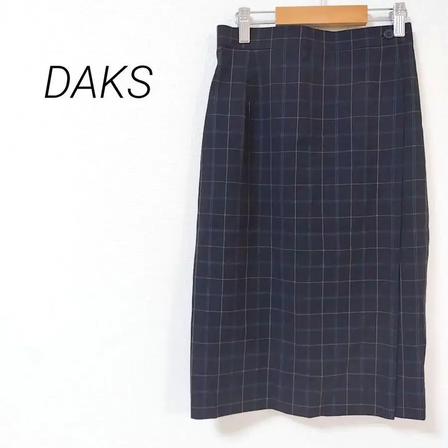 2.52 닥스 무릎 기장 랩 스커트 울 100 체크 로고 버튼