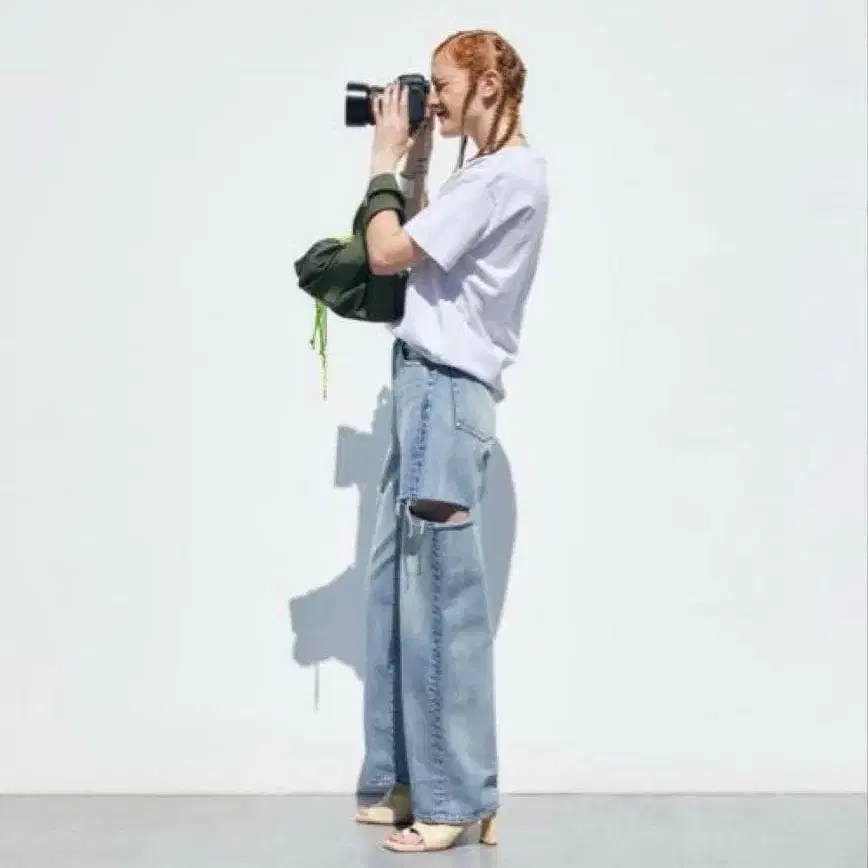 MOUSSY 스트레이트 데님 라이트 블루 데미지 가공