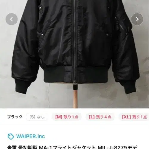 WAIPER.inc MA-1 플라이트 자켓 XL 블랙