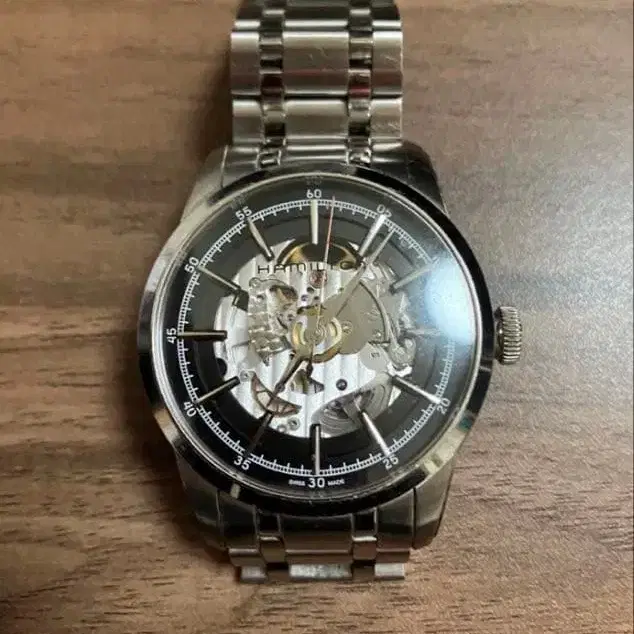 레어 해밀턴 레일로드 새상품급 자동 와인딩 스켈레톤 다이얼 실버 손목시계
