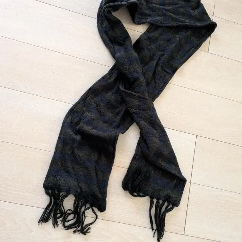 glamb 그램 울 롱 머플러 다크 네이비 x 브라운 보더 스톨