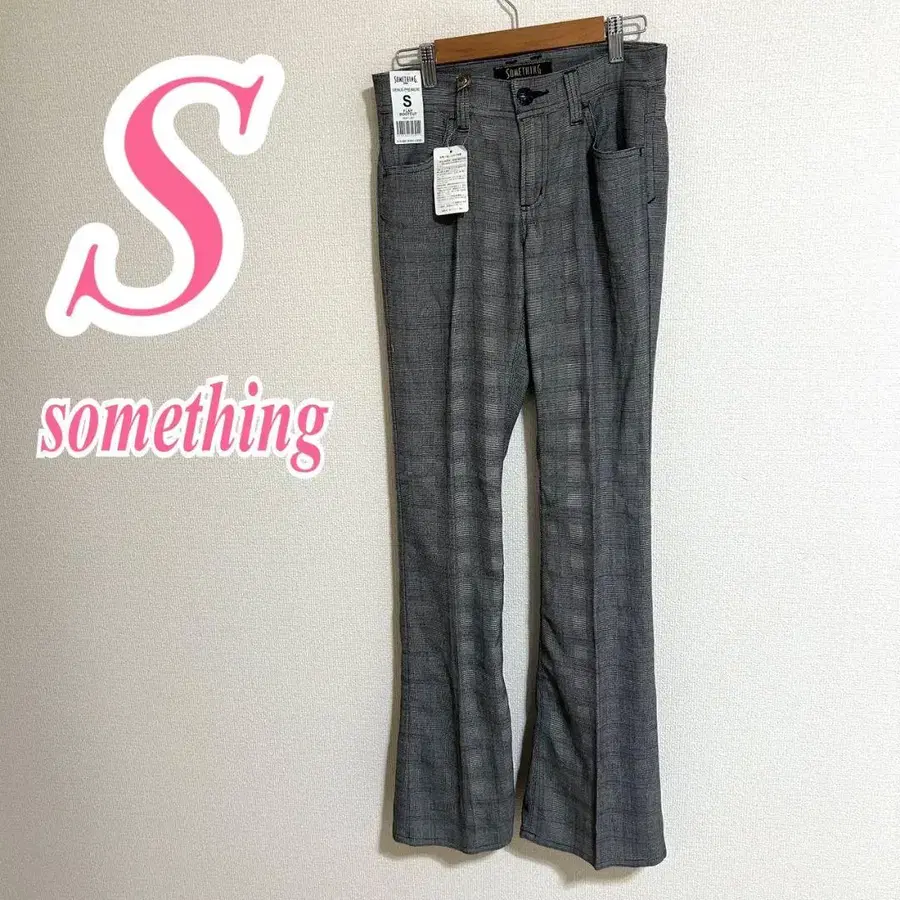 SOMETHING 그레이 체크 캐주얼 팬츠 S 롱 기장