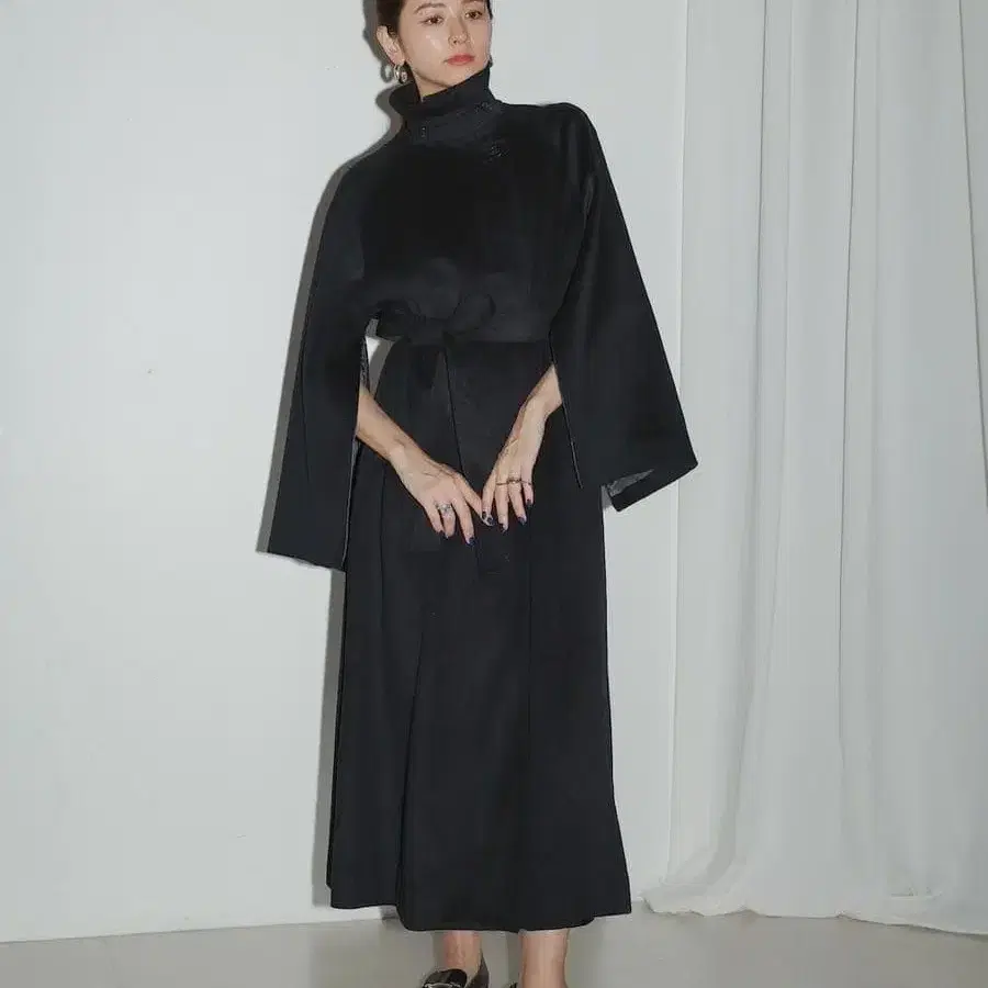 ciel'air 롱 코트 체스터 코트 울 컷 아웃 그레이
