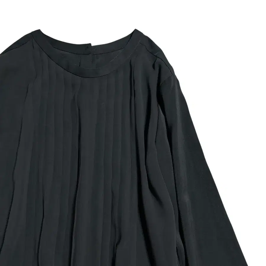 유나이티드 애로우즈 블랙 긴팔 플리츠 블라우스 밴드 카라 포멀