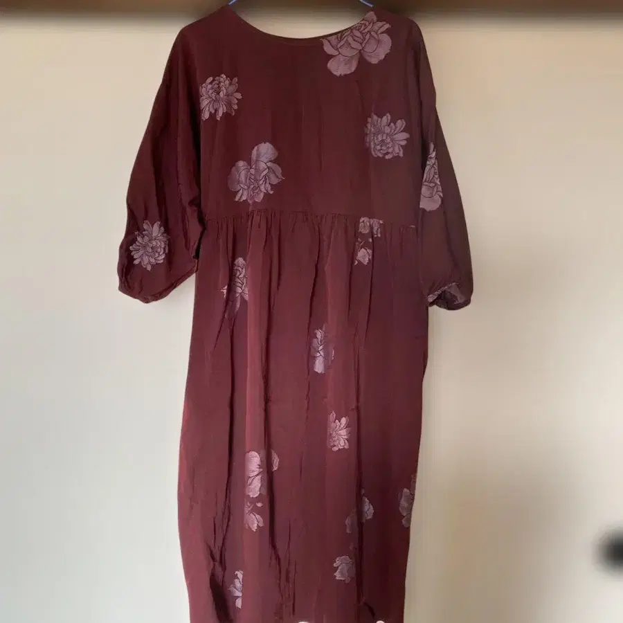 핸드메이드 기모노 리메이크 꽃무늬 자수의 버건디 롱 원피스